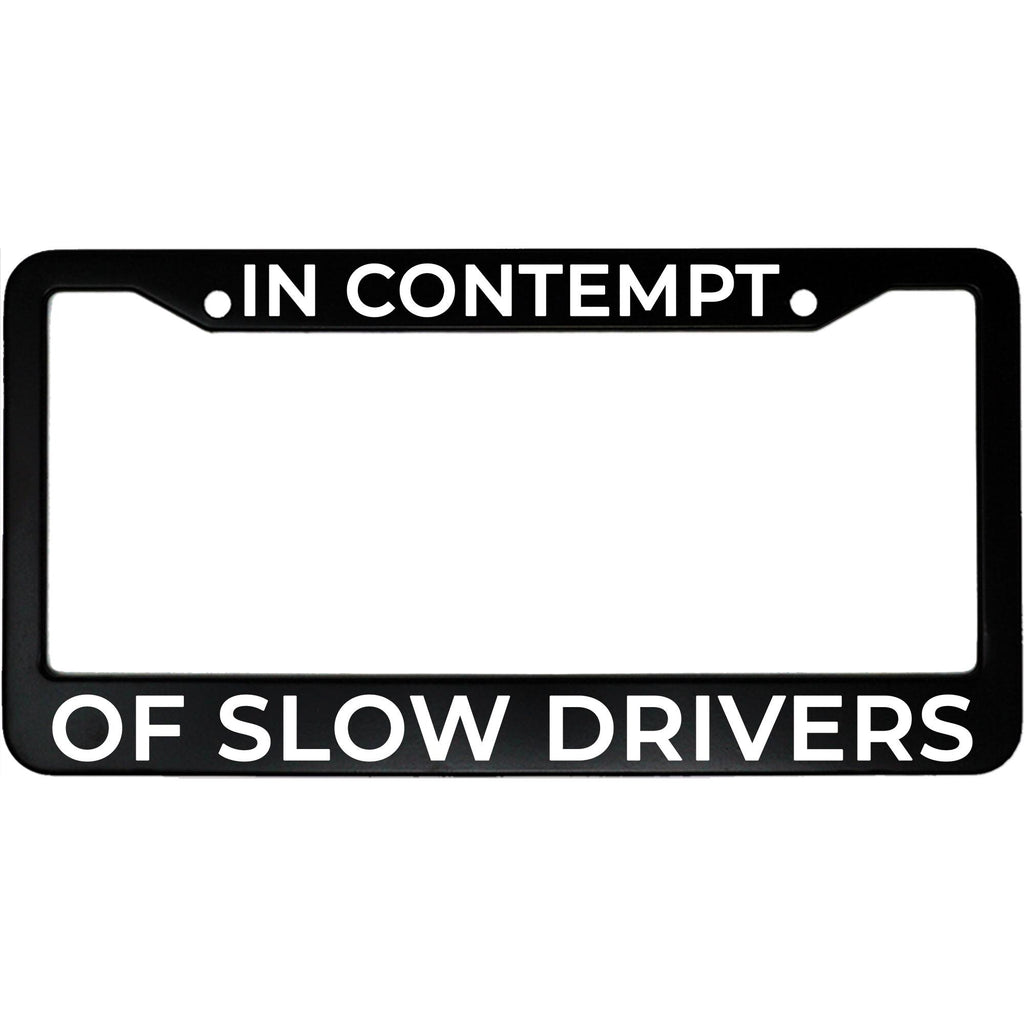 In Contempt of Slow Drivers License Plate Frame - Funny Aluminum Car Accessory for Lawyers & Fast Drivers