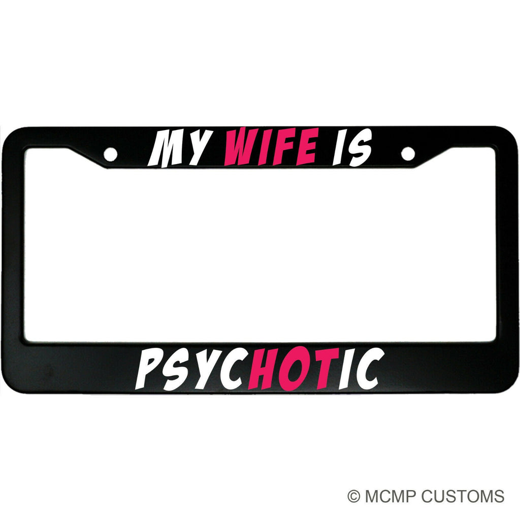 My Wife Is Psychotic License Plate Frame - Funny Aluminum Car Accessory for Bold Humor Lovers