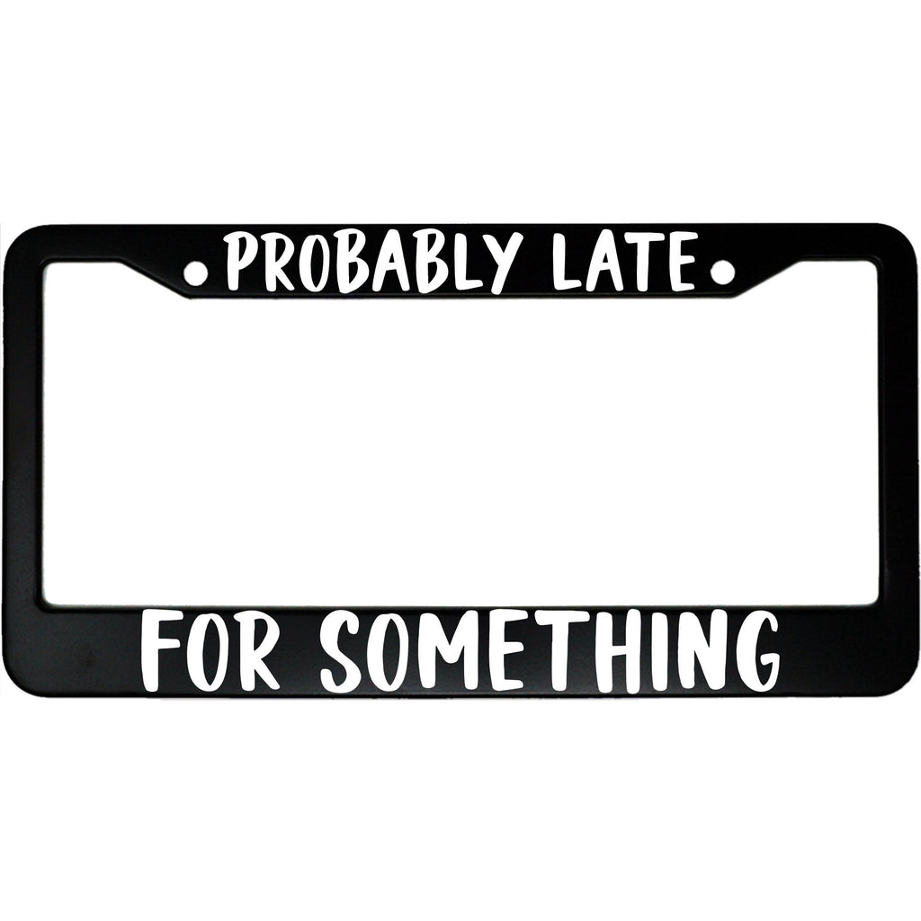 This humorous license plate frame is perfect for those who are always running a bit behind. Made from durable materials, it features the witty phrase "Probably Late For Something" in bold, white lettering on a sleek black background. This frame is designed to fit standard U.S. license plates and is easy to install with pre-drilled holes. Add a touch of personality to your vehicle and let everyone know you have a sense of humor about your punctuality. Ideal as a gift for friends, family, or yourself!