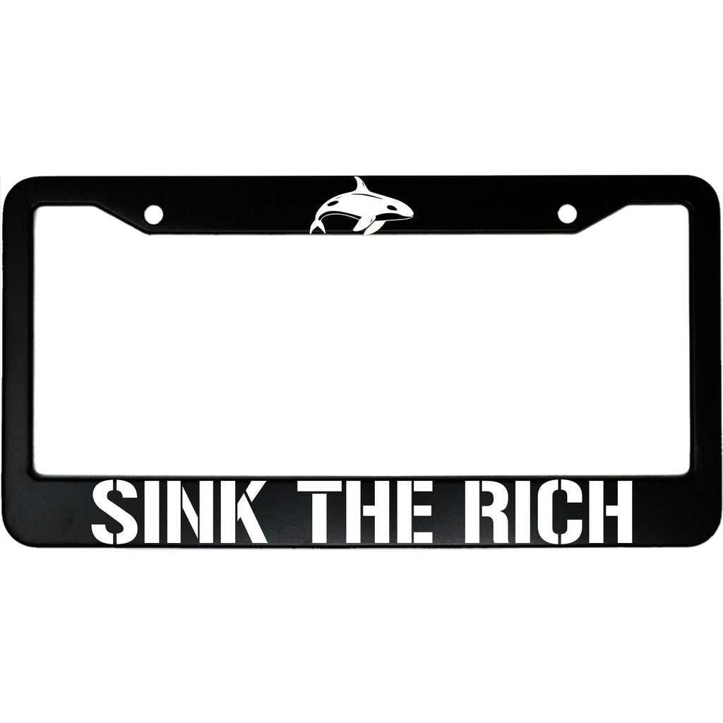 Sink The Rich License Plate Frame - Bold Aluminum Car Accessory for Orca Conservation Supporters